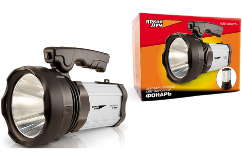 Фонарь ЯРКИЙ ЛУЧ S-300A "МЕГАВАТТ" - универсальный аккумуляторный фонарь. Встроенный кислотно-свинцовый аккумулятор 4 В, 7000 мАч. Возможность подзарядки телефонов, планшетов и других устройств от аккумулятора фонаря. Зарядное устройство с индикатором заряда. Удобная эргономичная ручка. Материал корпуса: ABS-пластик и алюминий.
